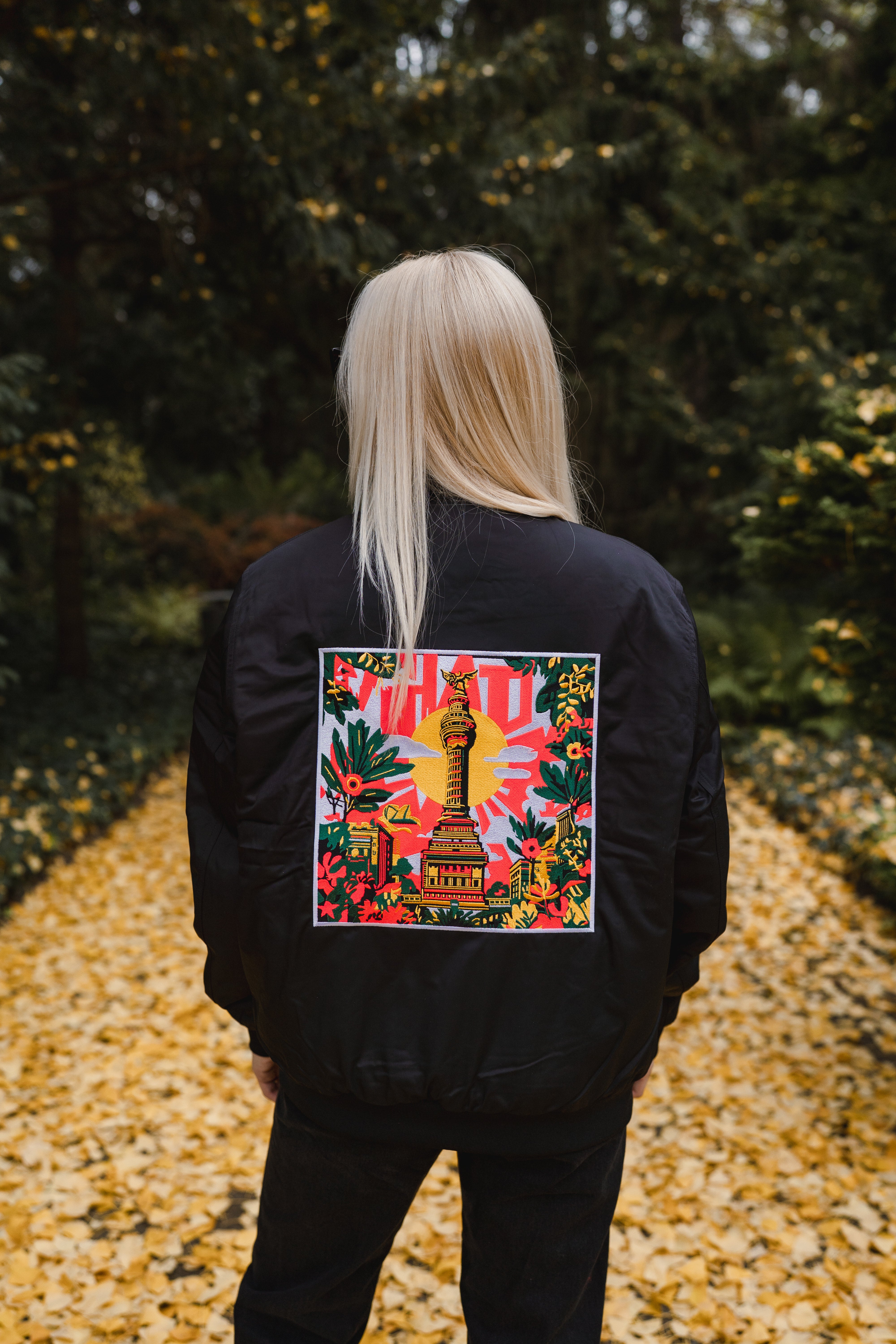 Mit über 300.000 Stichen und mehr als 6 Stunden reiner Stickzeit, ergänzt durch sorgfältige Vor- und Nachbearbeitung von Hand, entsteht in einem kompletten Arbeitstag ein echtes Einzelstück für dich.