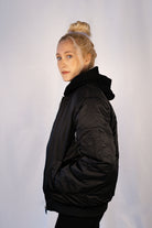 Schwarze Unique-Bomberjacke mit gestepptem Innenfutter